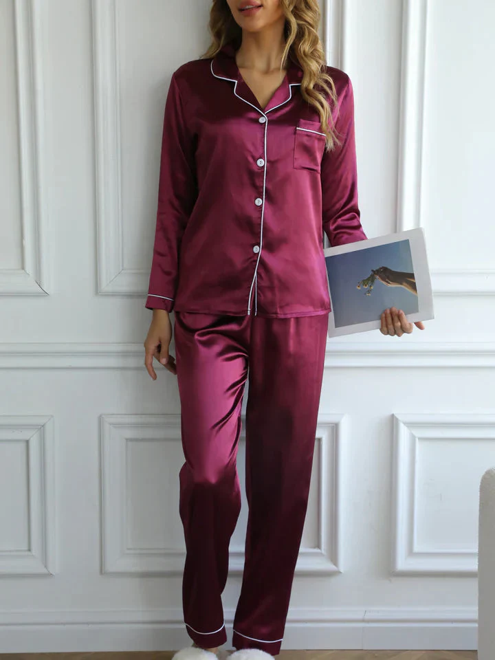 Soléna | Ensemble Pyjama Satin Féminin – Manches Longues & Boutonné
