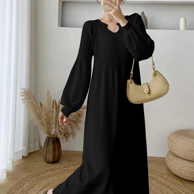 Soline | Robe à Manches Longues et Col en V, Chic et Confortable pour le Quotidien