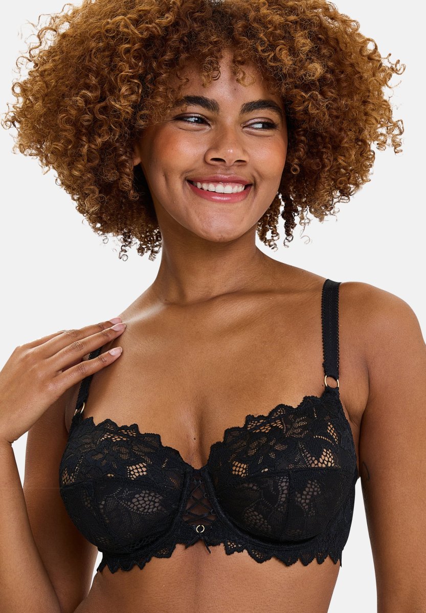 Sa dentelle douce et emblématique assure un confort absolu, tandis que le laçage délicat à l’entre-seins, sublimé par de petits anneaux dorés, apporte une touche de raffinement unique.