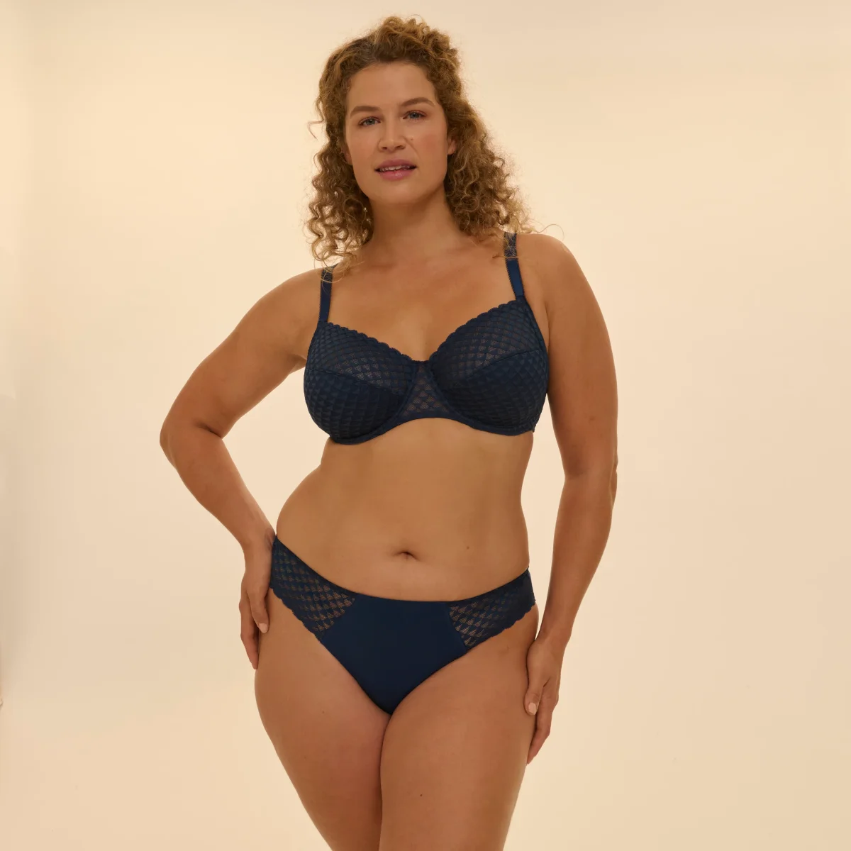 Le dos cheminée en dentelle, doublé de tulle nerveux à partir du bonnet D, garantit un maintien optimal dans les bonnets profonds — un vrai plus pour les poitrines généreuses.