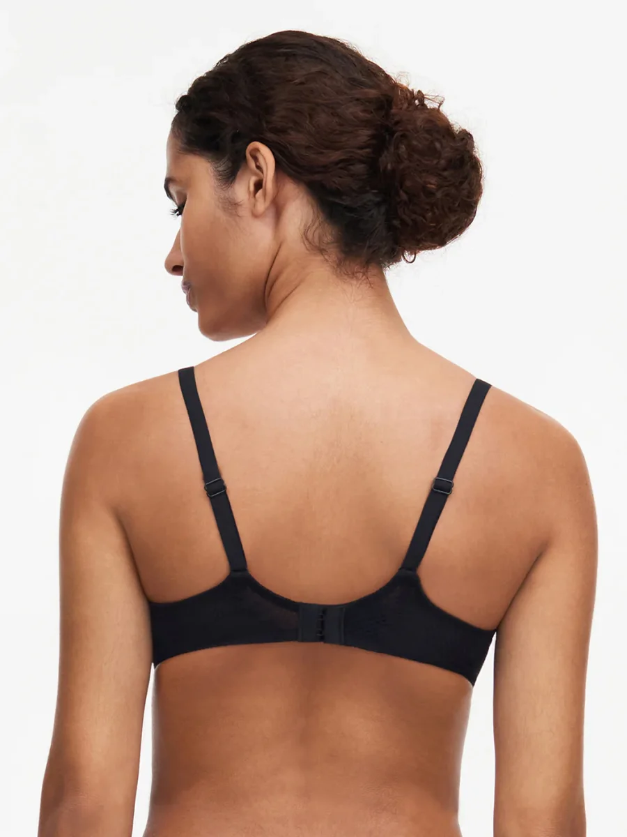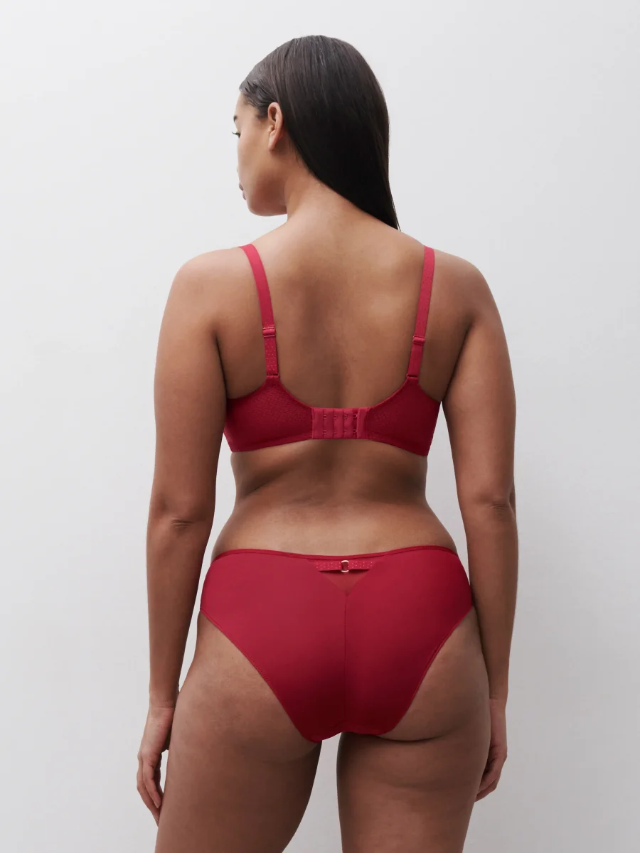 Les bretelles à pois ornées d’anneaux et la plaque siglée Chantelle à l’entre-seins signent une finition précieuse et moderne.