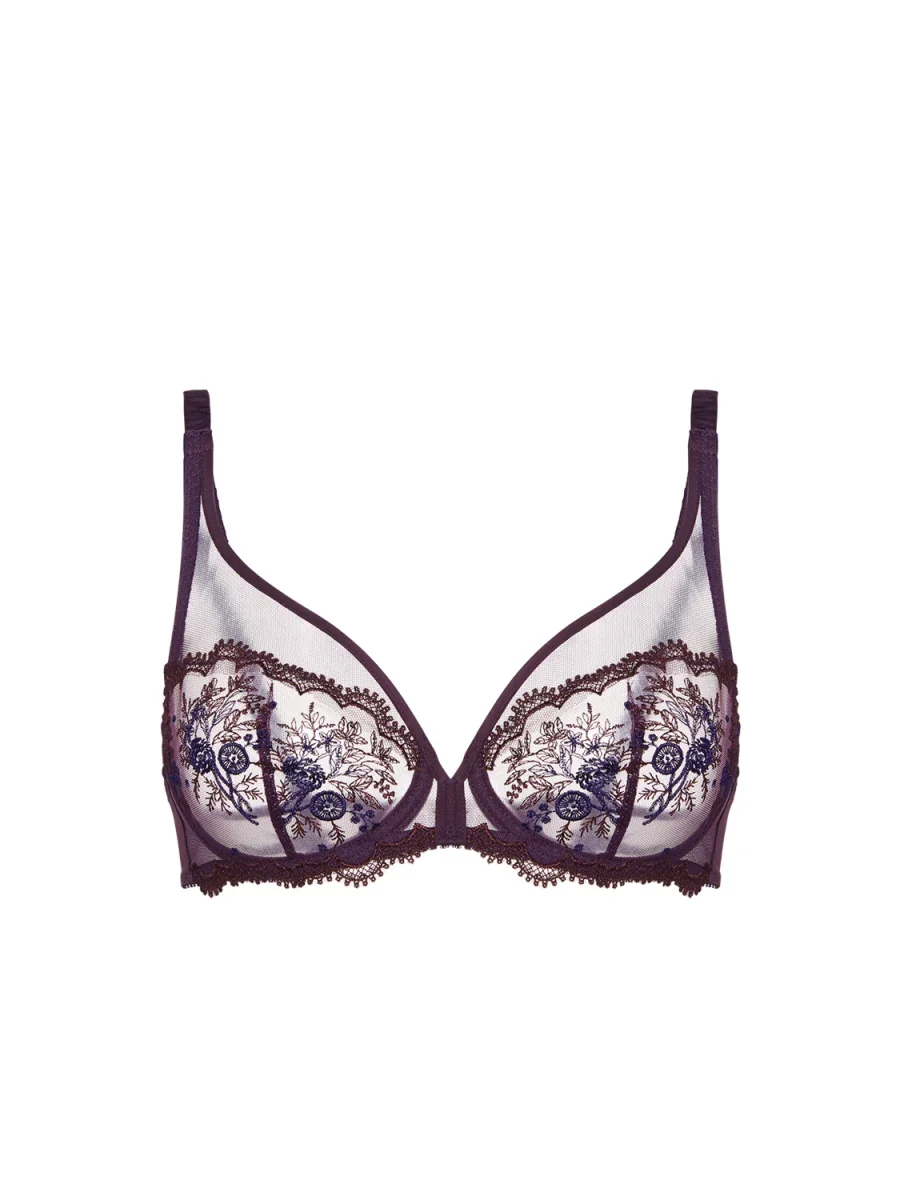 Sa broderie florale signature, délicatement travaillée, sublime la poitrine tout en jouant avec la transparence pour un effet sensuel et raffiné.