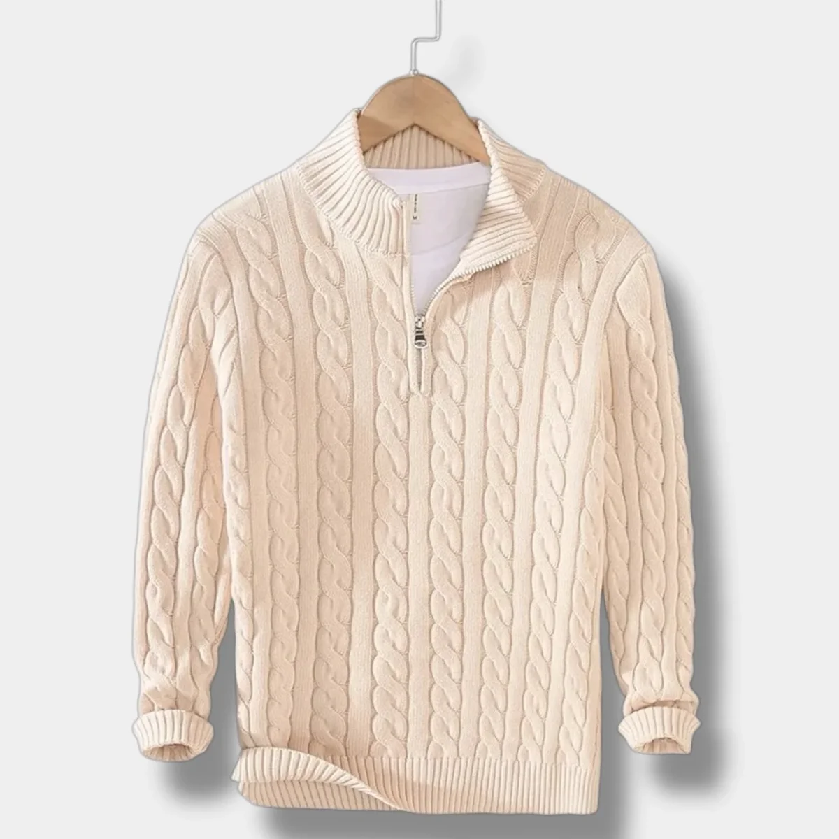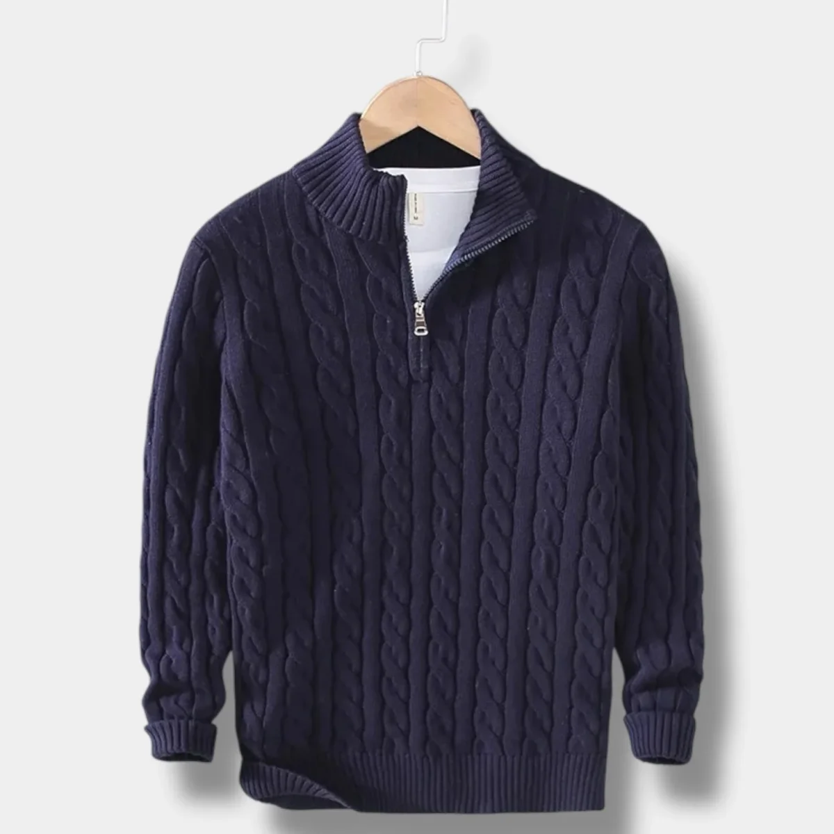 Thibault | Pull homme Edward Jacquard à col montant et demi-zip