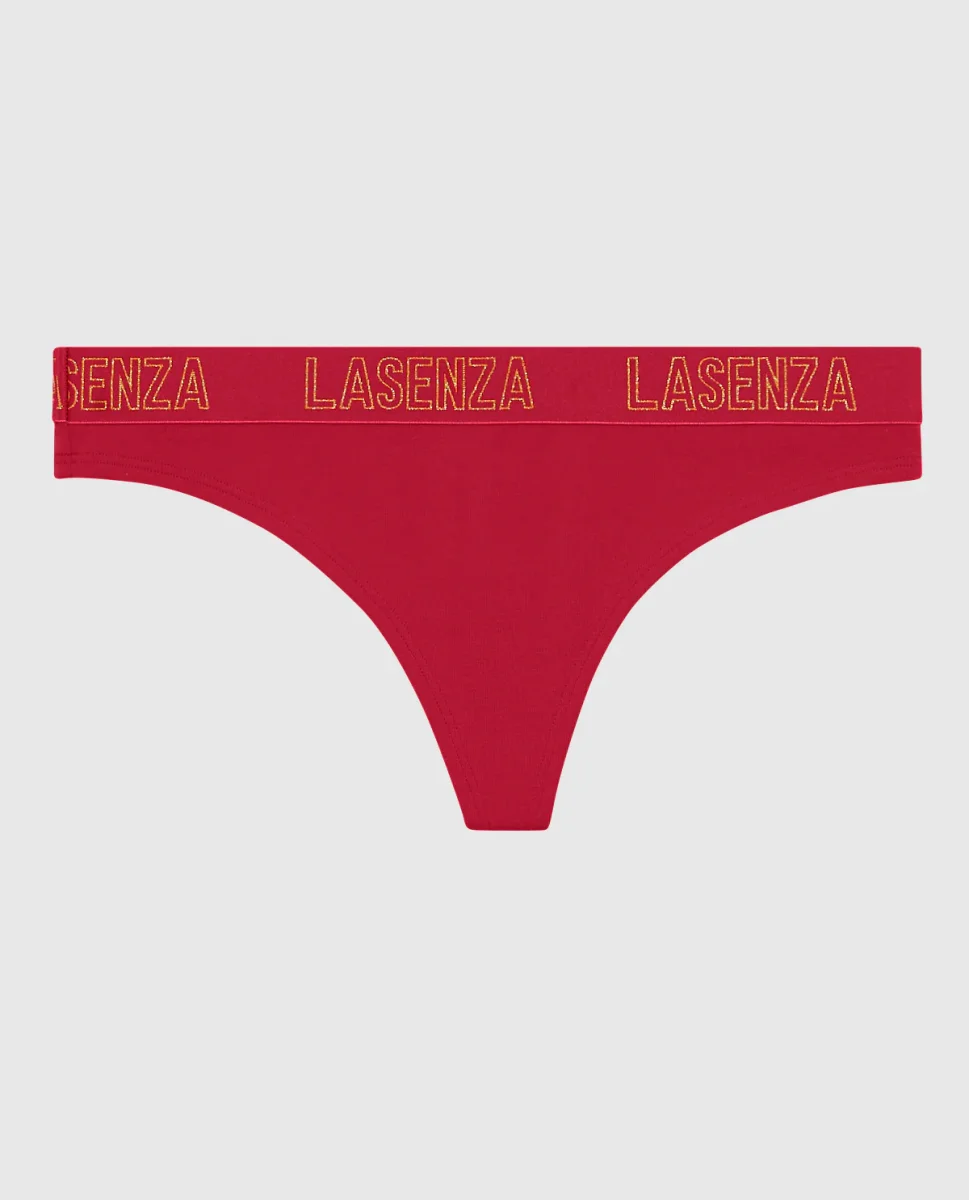 Thong Panty with Logo Band in Cosmo Red