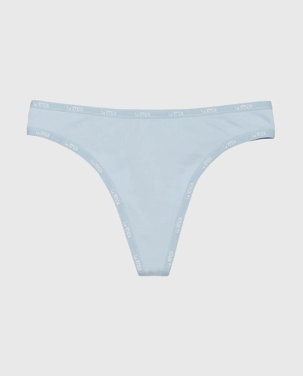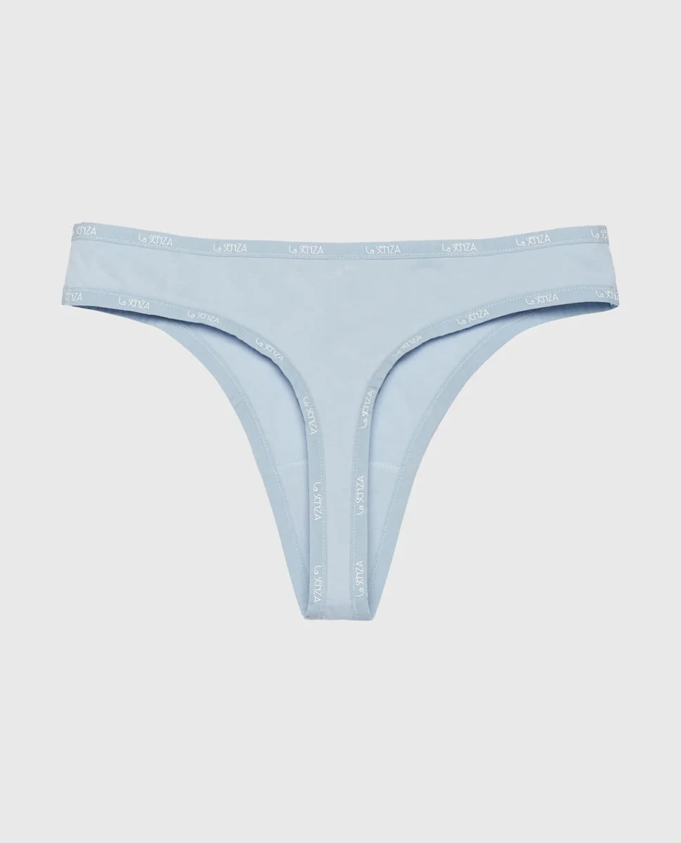 A bold take on minimalism—this Subdued Blue Thong Panty with Logo Trim features soft stretch fabric and signature logo detailing for an effortlessly cool look.