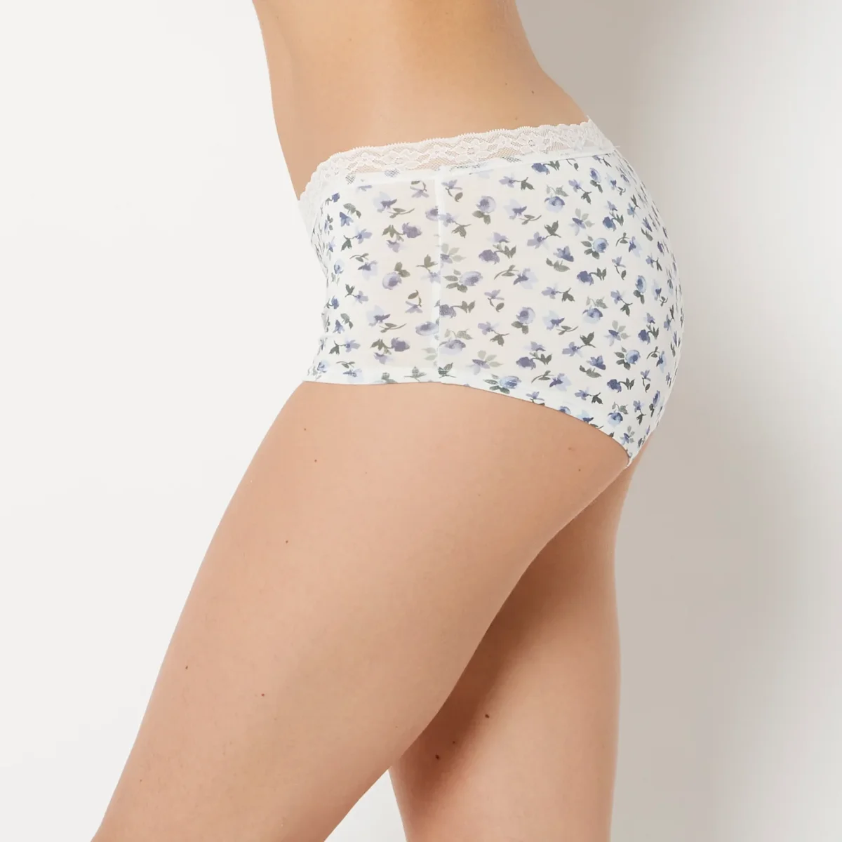 Stay comfortable and stylish in this ultrasoft boyshort panty featuring delicate lace trim in fresh breezy floral. The smooth, breathable fabric provides reliable support and a flattering fit, while the charming floral pattern brings seasonal appeal. A dependable essential that celebrates comfort without compromising on style.