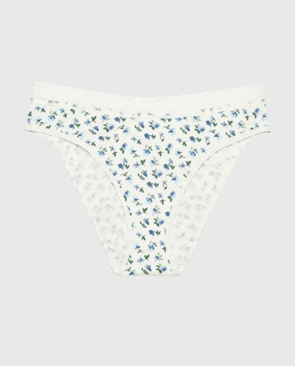 Embrace spring in this ultrasoft modal bikini panty featuring delicate lace trim in lovely breezy floral. The breathable modal fabric keeps you comfortable all day, while the charming floral pattern brings a fresh, seasonal touch. A versatile essential that pairs beautifully with any wardrobe. 92% MODAL, 8% ELASTANE Modal