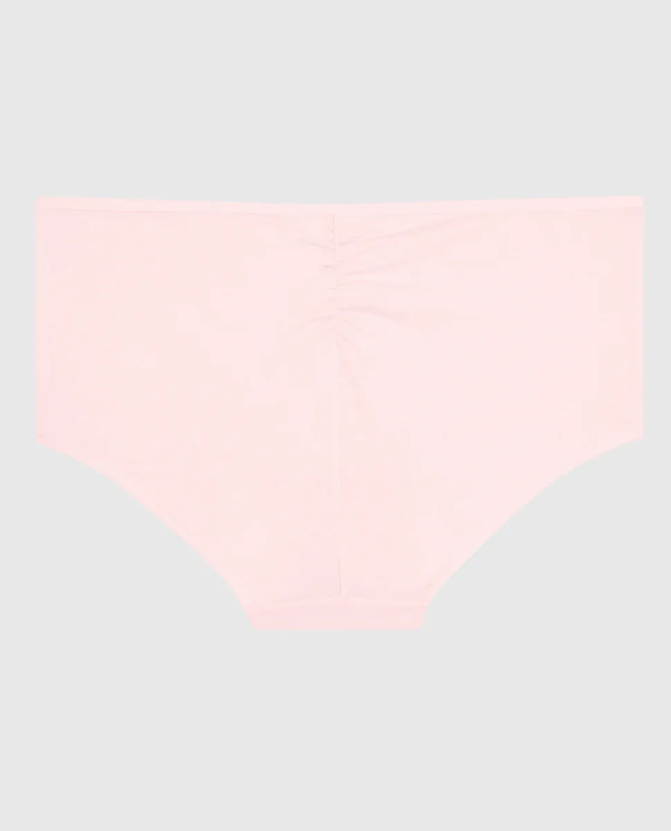With a supersoft body, this boyshort panty is perfection! A rushed back detail adds a touch of flirty and full back coverage provides you with a comfortable fit for all day wear. Low-rise fit. Imported polyester, elastane.
