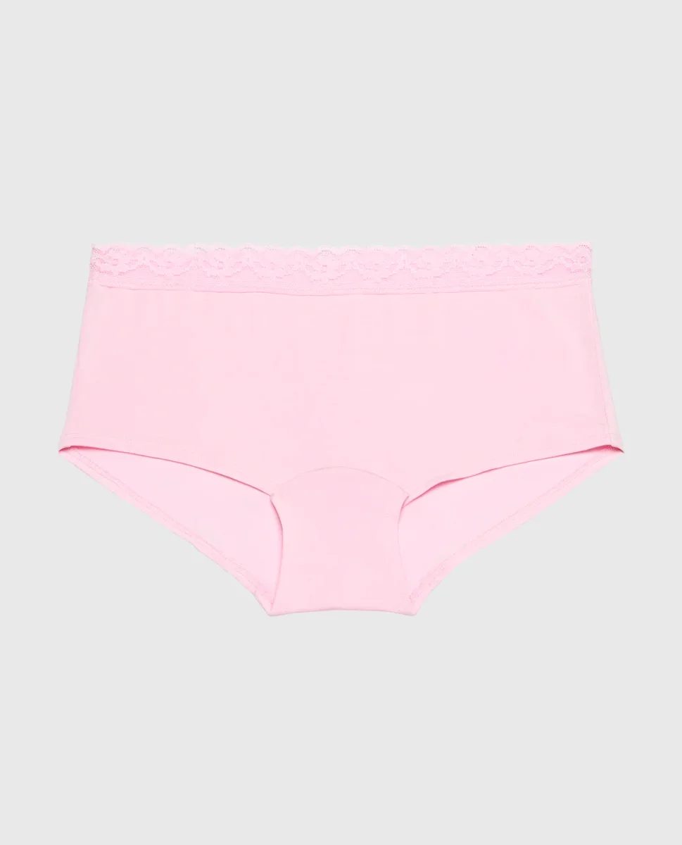 Ultrasoft Modal Boyshort Panty with Lace Trim in Sweet Dream