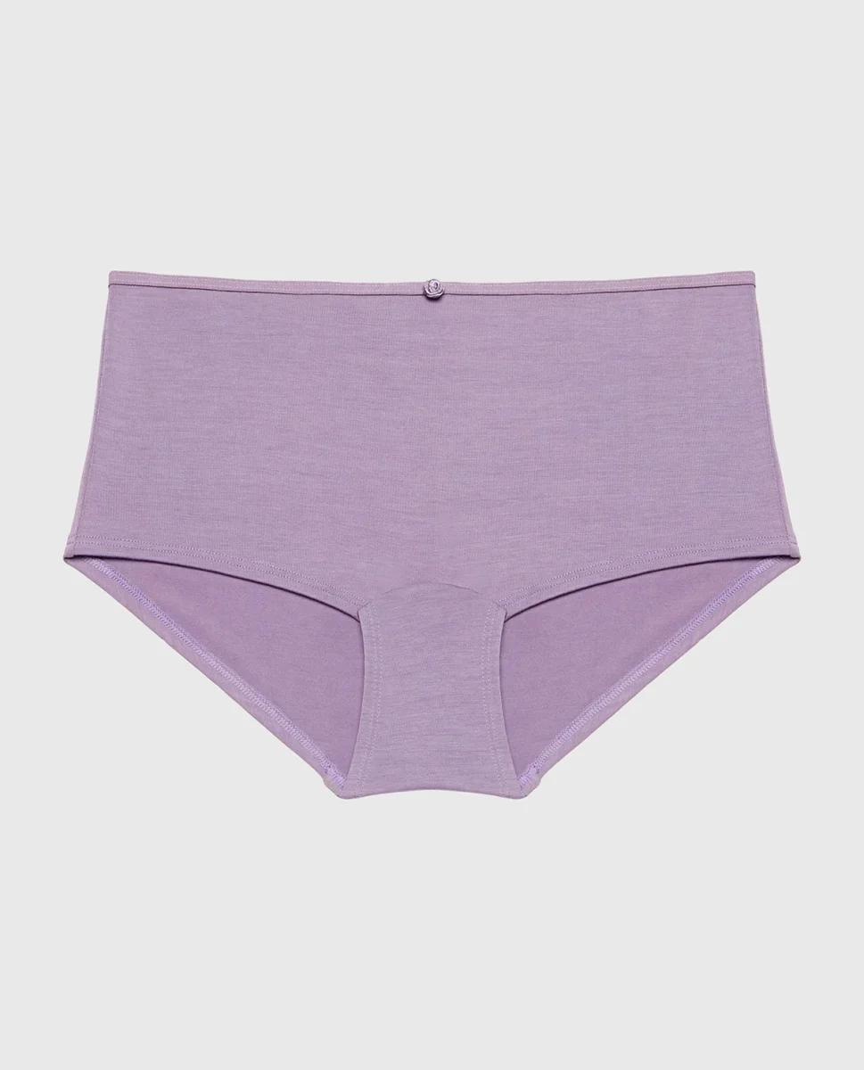 Ultrasoft Modal Boyshort Panty in Purple Haze Experience ultimate comfort with this boyshort panty from our Ultrasoft Modal collection, featuring a stunning Purple Haze tone. Charming rosette details elevate this everyday essential with subtle sophistication. The generous coverage offers reliable support and a seamless look under any garment.