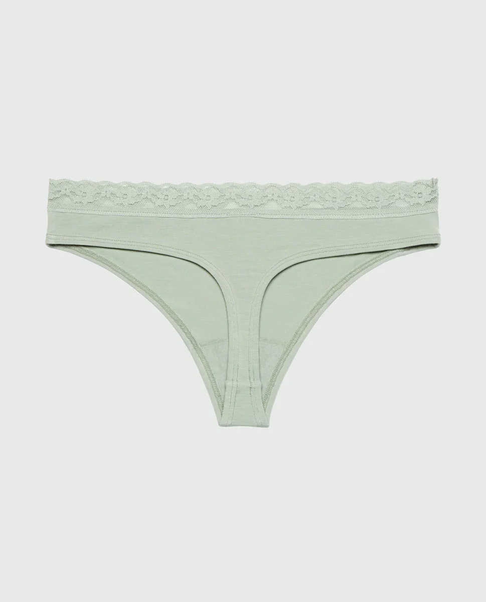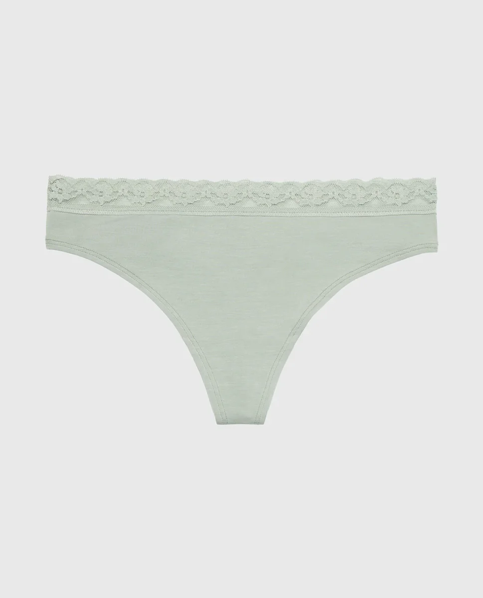 Ultrasoft Modal Cheeky Thong Panty with Lace Trim In Iceberg Green