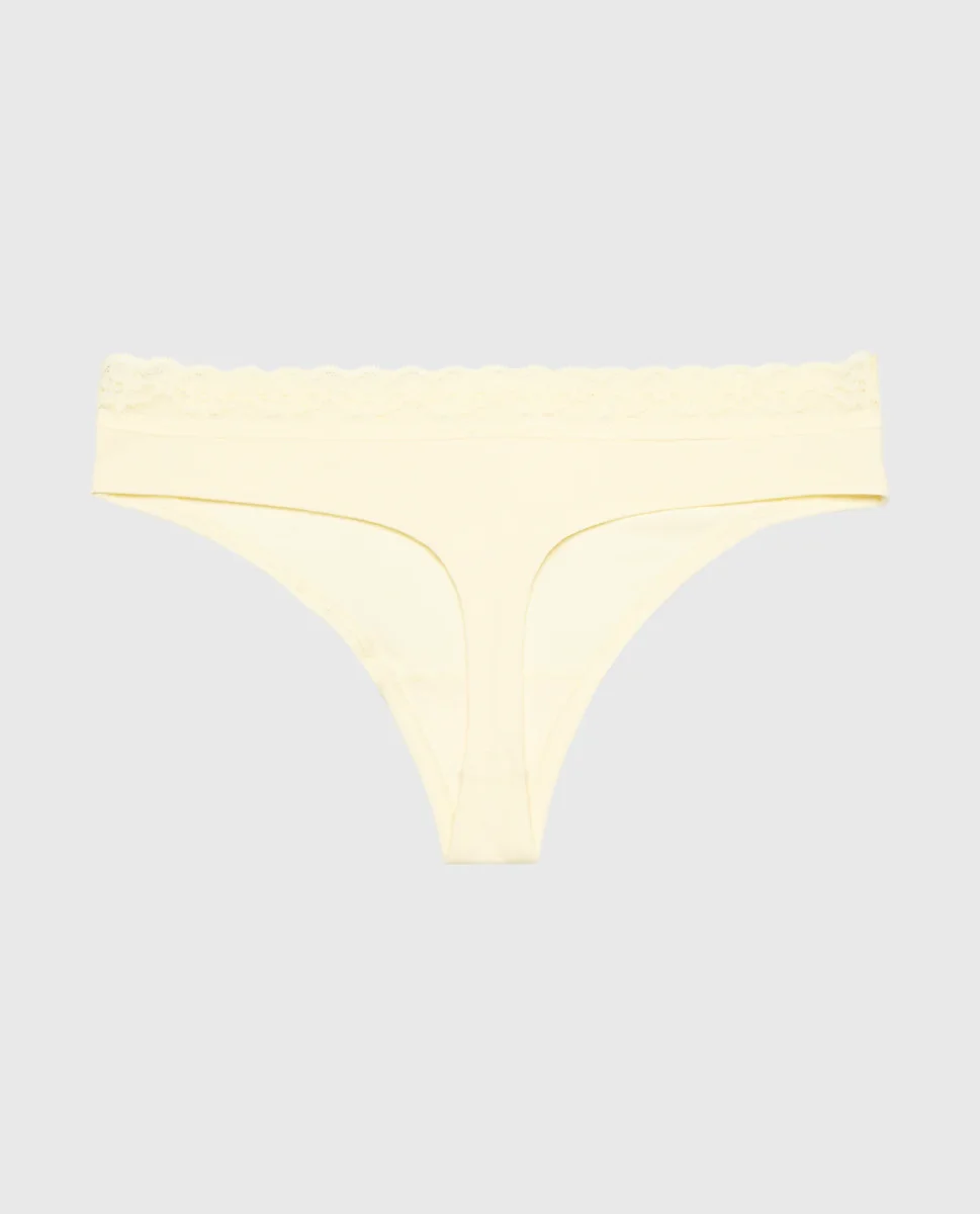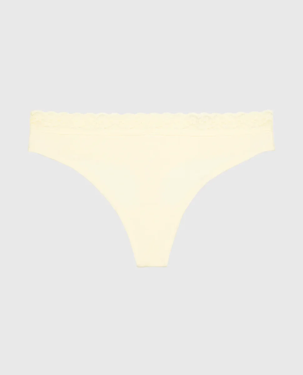 Ultrasoft Modal Cheeky Thong Panty with Lace Trim In Lemon Icing
