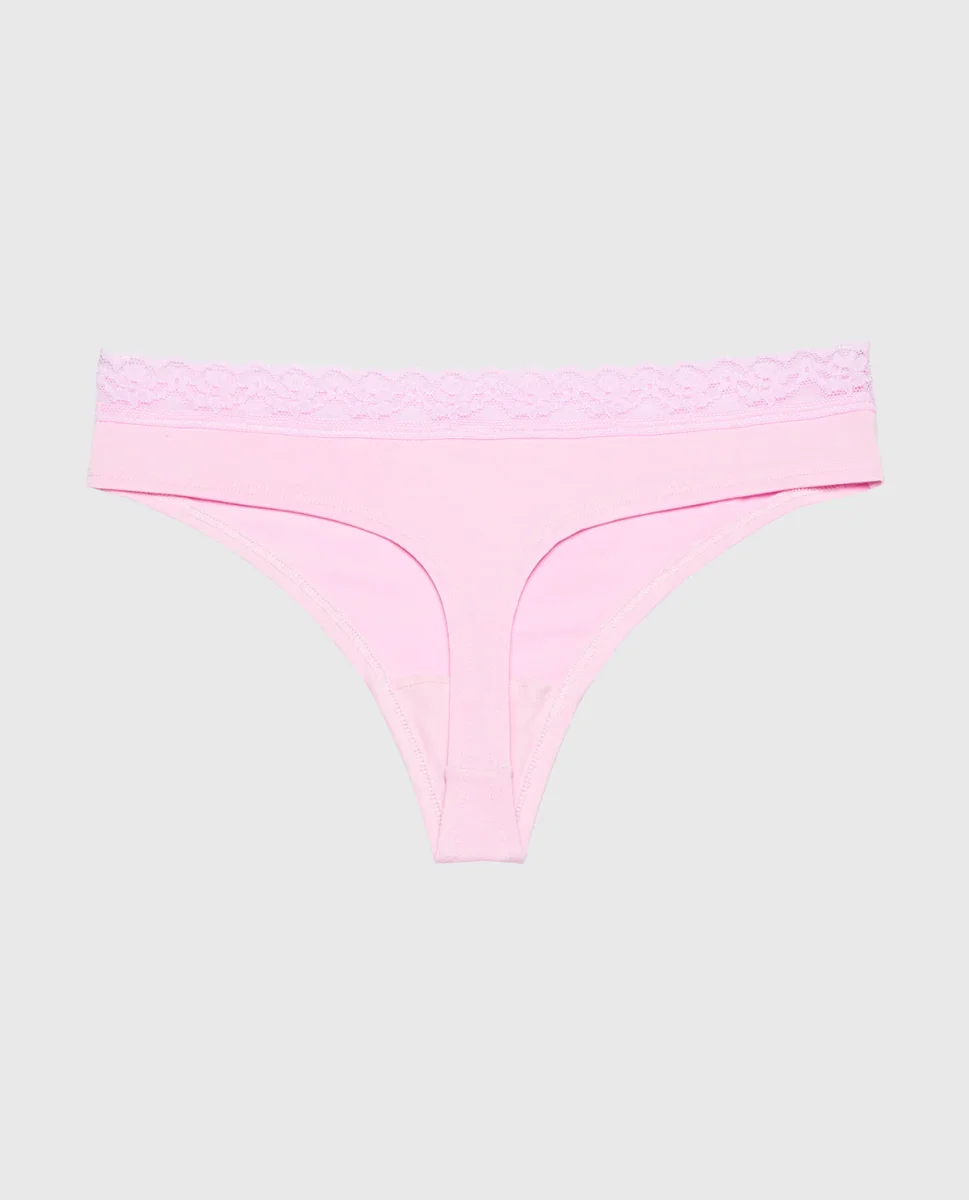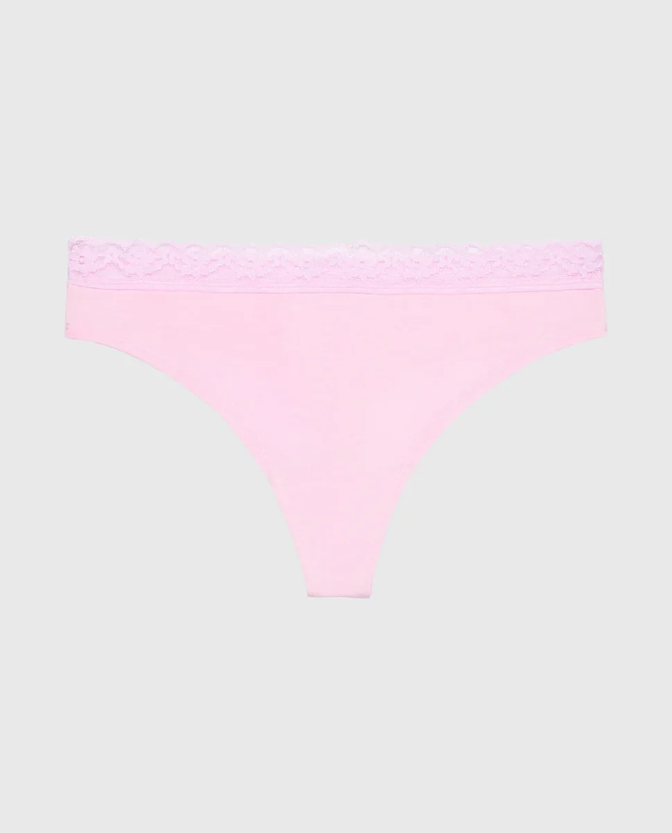 Ultrasoft Modal Cheeky Thong Panty with Lace Trim in Sweet Dream