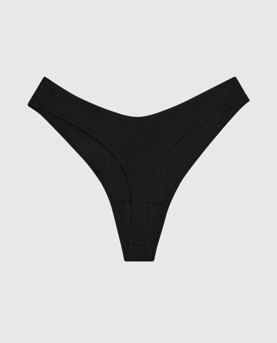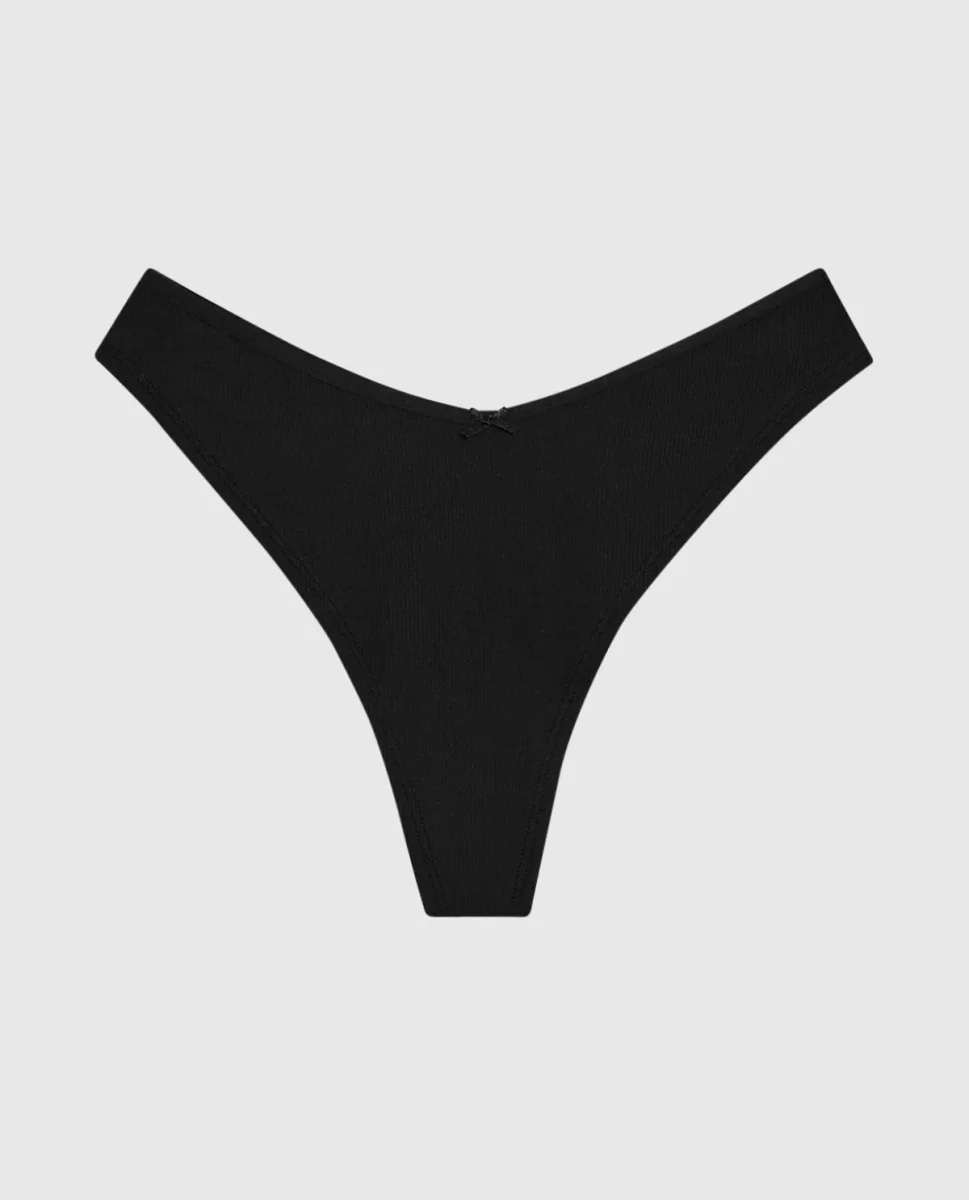 Perfect for everyday! This thong panty is designed with an allover ribbed modal body accented with a small bow and a high leg fit. Imported modal, elastane.