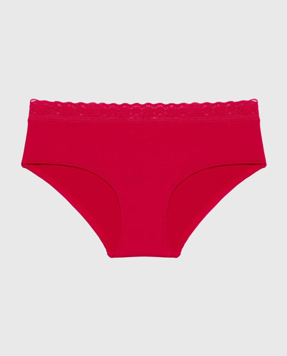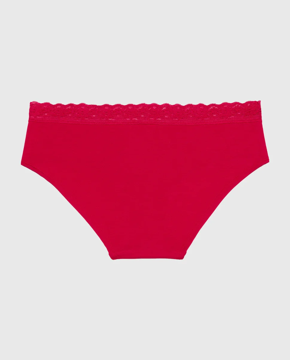 Ultrasoft Modal Hipster Panty with Lace Trim in Crimson