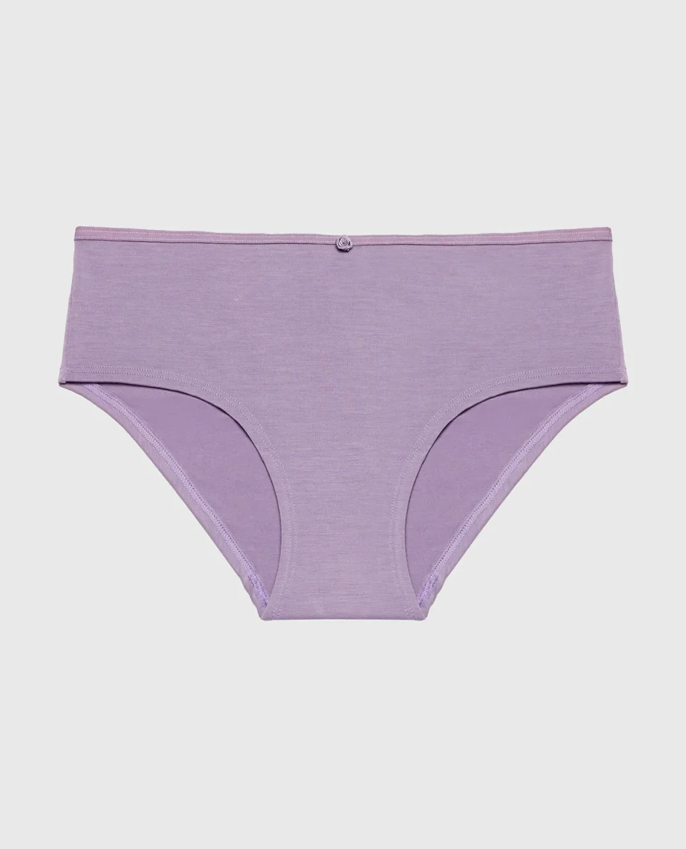 Ultrasoft Modal Hipster Panty in Purple Haze Discover comfort meets style with this hipster panty from our Ultrasoft Modal collection, showcasing a captivating Purple Haze shade. Featuring charming rosette details, this mid-rise essential delivers a flattering fit with all-day comfort. The versatile design works beautifully under any wardrobe staple.