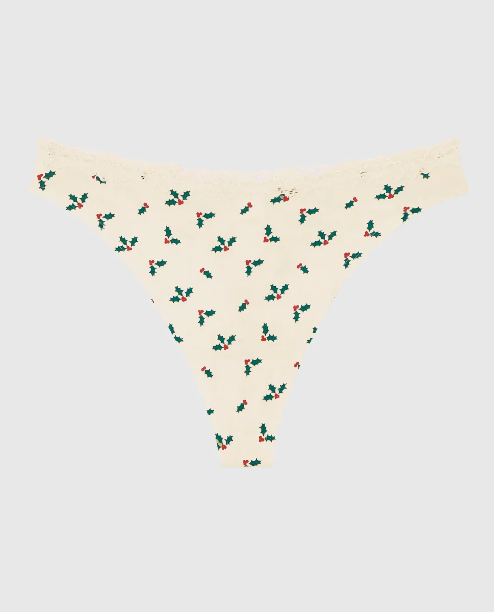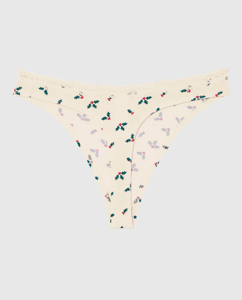 Perfect for the Holidays! This midrise panty features our allover ribbed modal with a delicate lace trim. Imported modal, elastane.