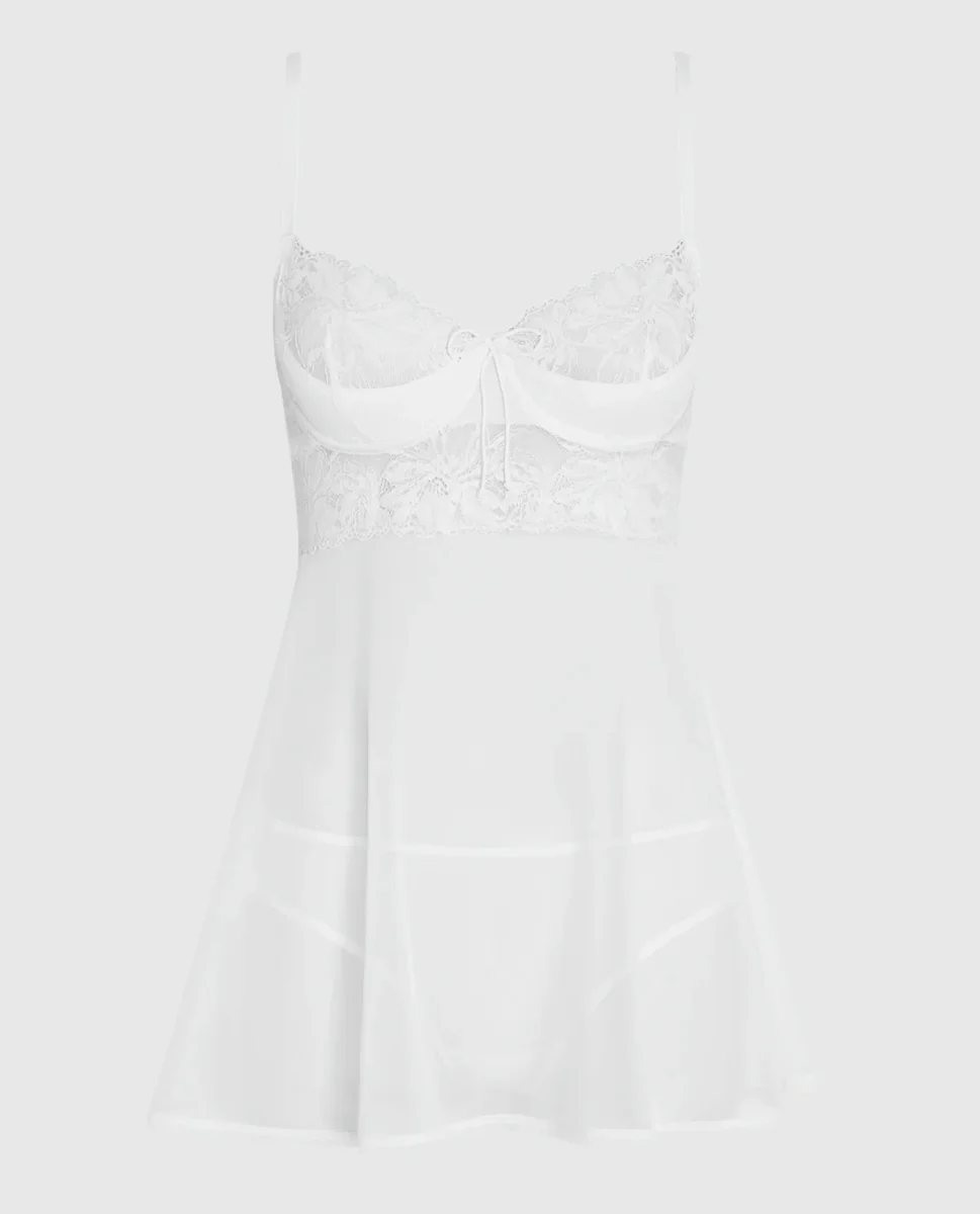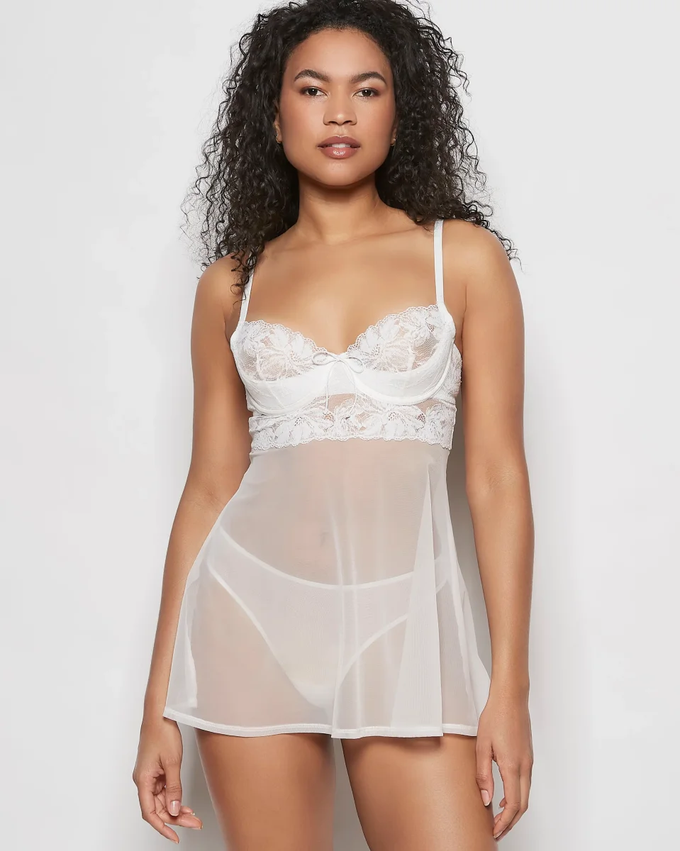 Flirty and Sweet! Embrace your confidence in our Ivory Balconette Babydoll with a Bow .