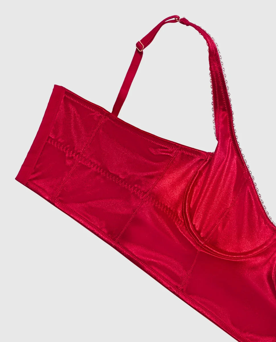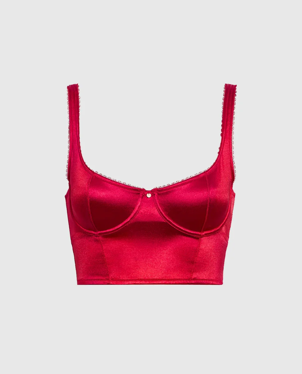 Unlined Satin Balconette Bra Top in Cosmo Red