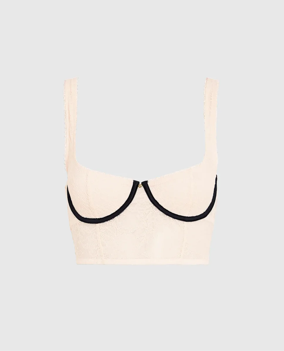 Unlined Satin Balconette Bra Top in Ivory Dawn