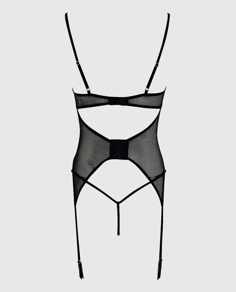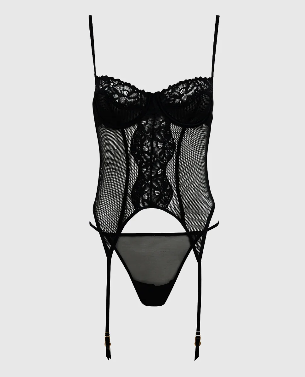 Feel confident in your new lingerie staple! This curve hugging merrywidow is structured with boning along the body and attached garter straps to complete your lingerie set. Unlined cups with a touch of lace for the perfect amount of sexy.