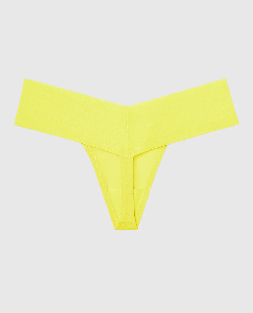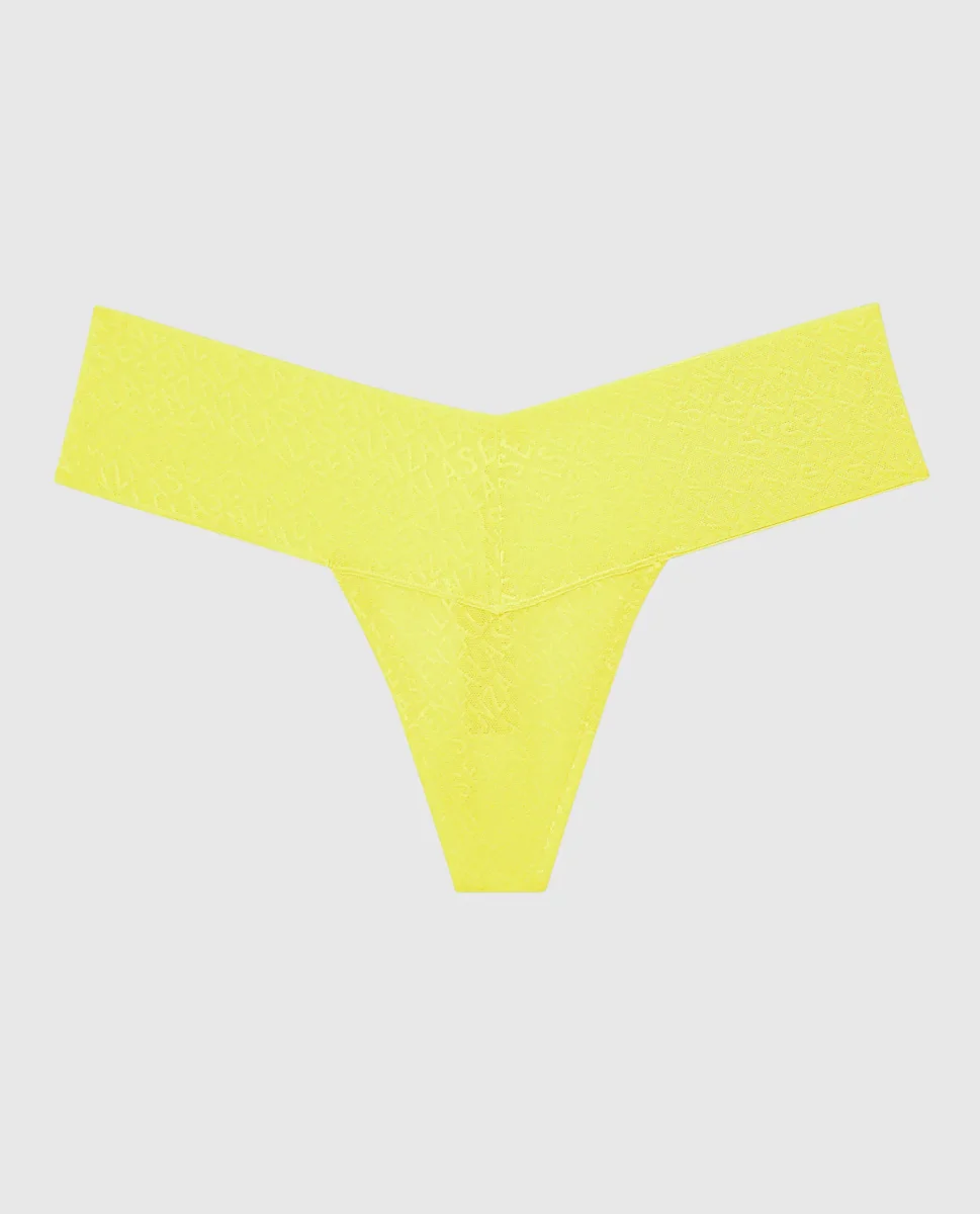 Our newest panty obsession! This thong features our new allover logo mesh with a wide waistband and minimal bum coverage. Imported polyamide, elastane.