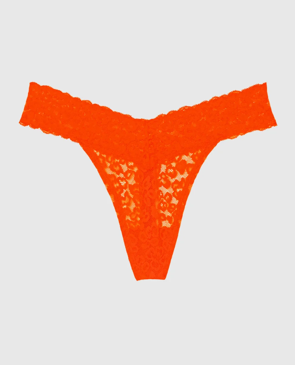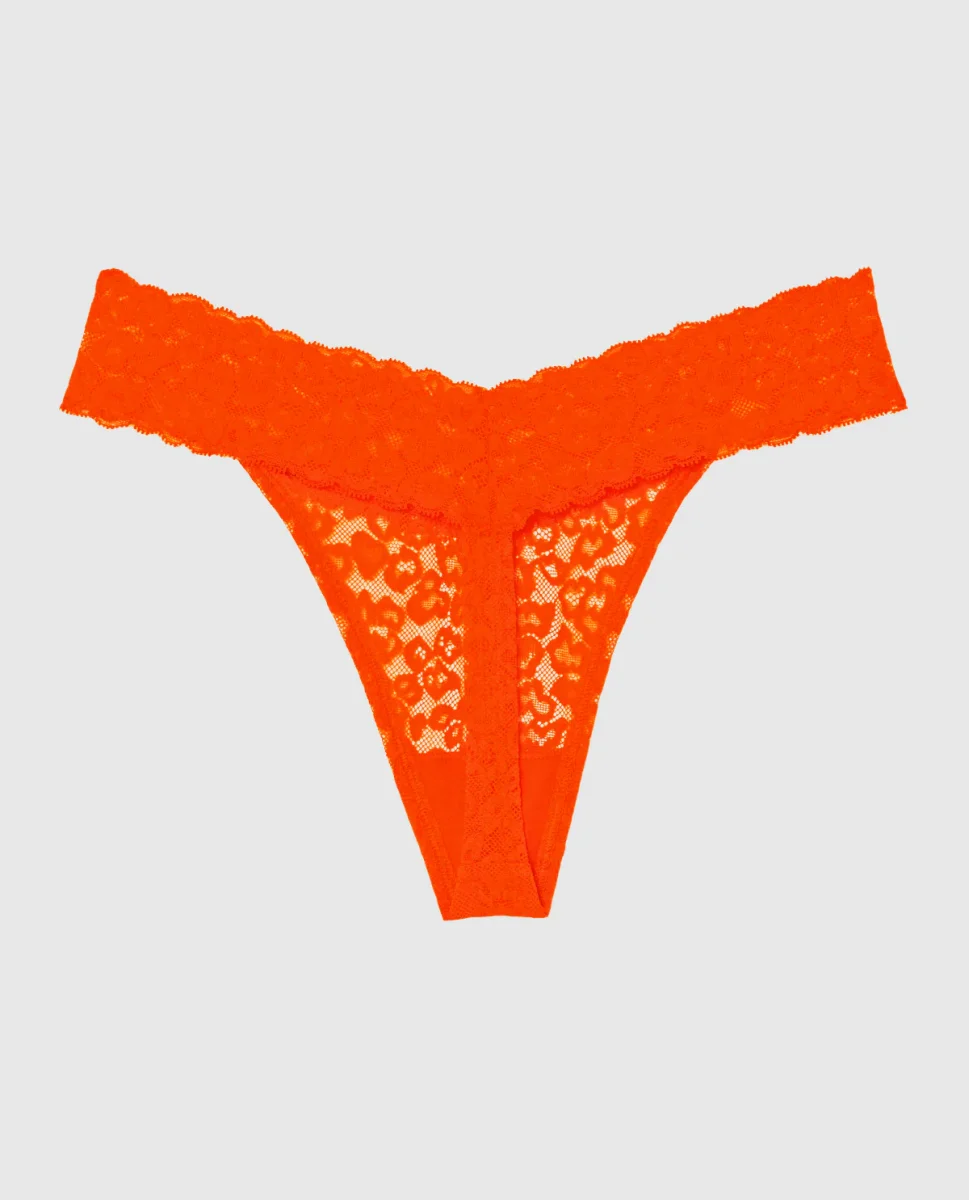 Your everyday underwear just got more gorgeous. This elevated thong panty is crafted with our soft lace, v waist design and minimal bum coverage. Imported nylon, spandex.