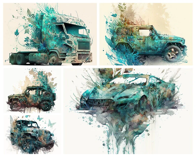 Embark on a captivating journey through the world of watercolor dream cars, where artistry and innovation collide. « Watercolor Dream Cars » is a stunning collection of 41 hand-painted watercolor designs that capture the imaginative essence of automobiles of the future.