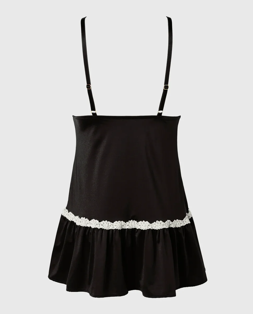 Elevate your collection with the Wicked Lace Micro Dress in Tuxedo Black. Part of the lingerie collection, crafted in premium microfiber, featuring a unlined lining for a smooth feel, with a wireless design for gentle support, and a back-close closure. Tailored for lasting softness and support.