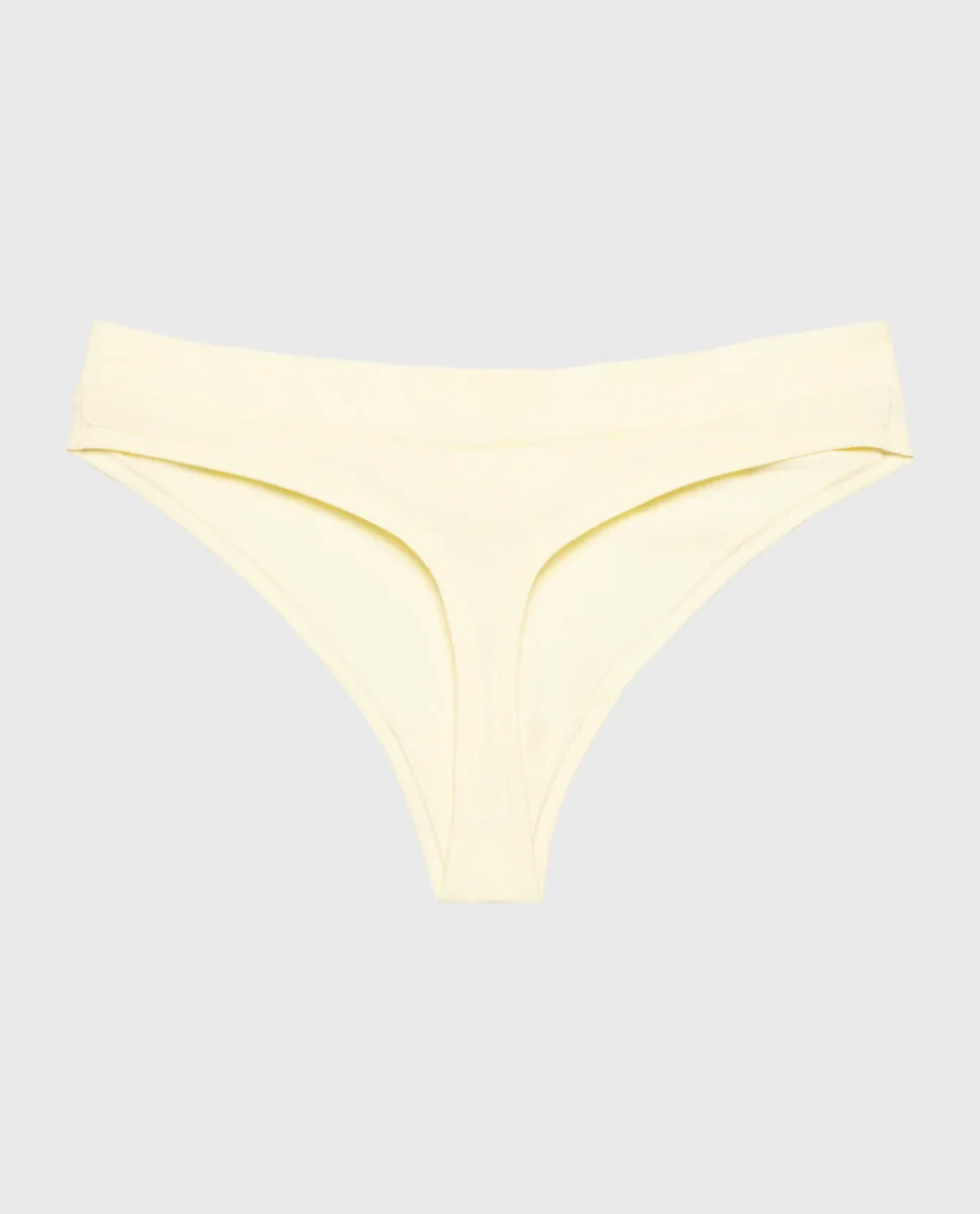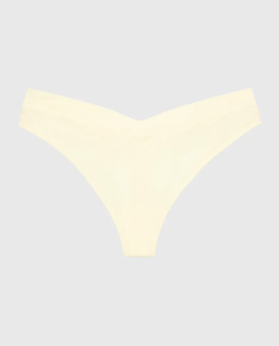 Wide Waist Cotton Thong In Lemon Icing