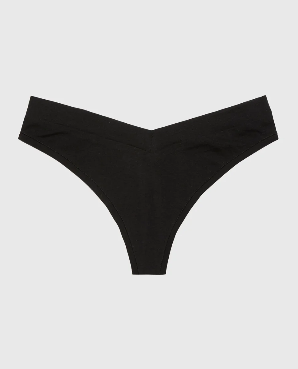 Embrace timeless elegance with this wide waist cotton thong in classic tuxedo black, designed for everyday confidence. The supportive wide waistband provides smooth coverage while the breathable cotton keeps you comfortable throughout the day. The streamlined thong silhouette creates invisible panty lines under any outfit, making it an essential foundation piece. 91% COTTON, 9% ELASTANE