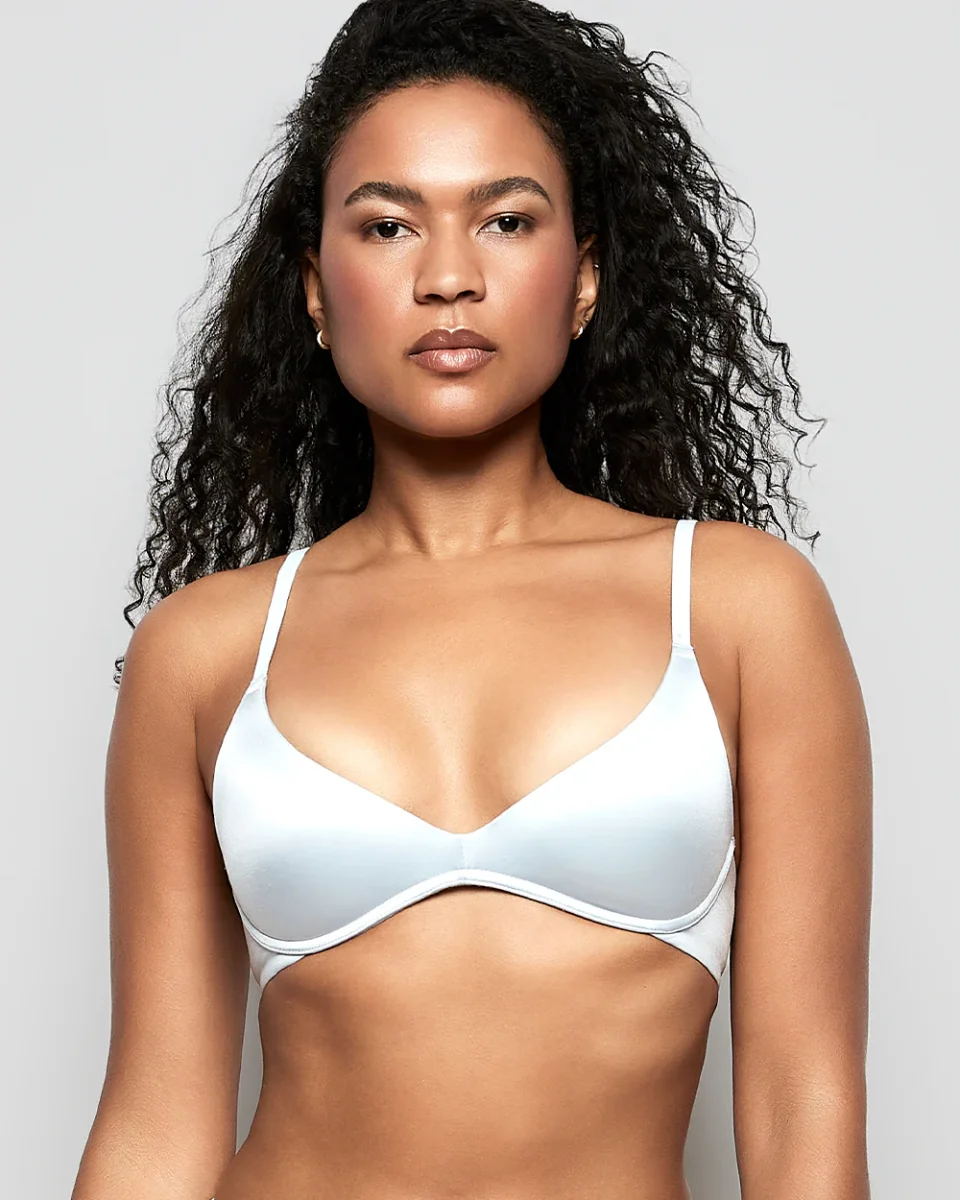 Introducing our new wireless bra with super soft brushed microfiber and a light cushioned padding that provides a subtle lift. Light push up cushioned padding for a subtle lift Wireless Demi cup Super soft brushed microfiber Wide smoothing wing Adjustable bra straps Open neckline & back closure Imported polyamide, elastane